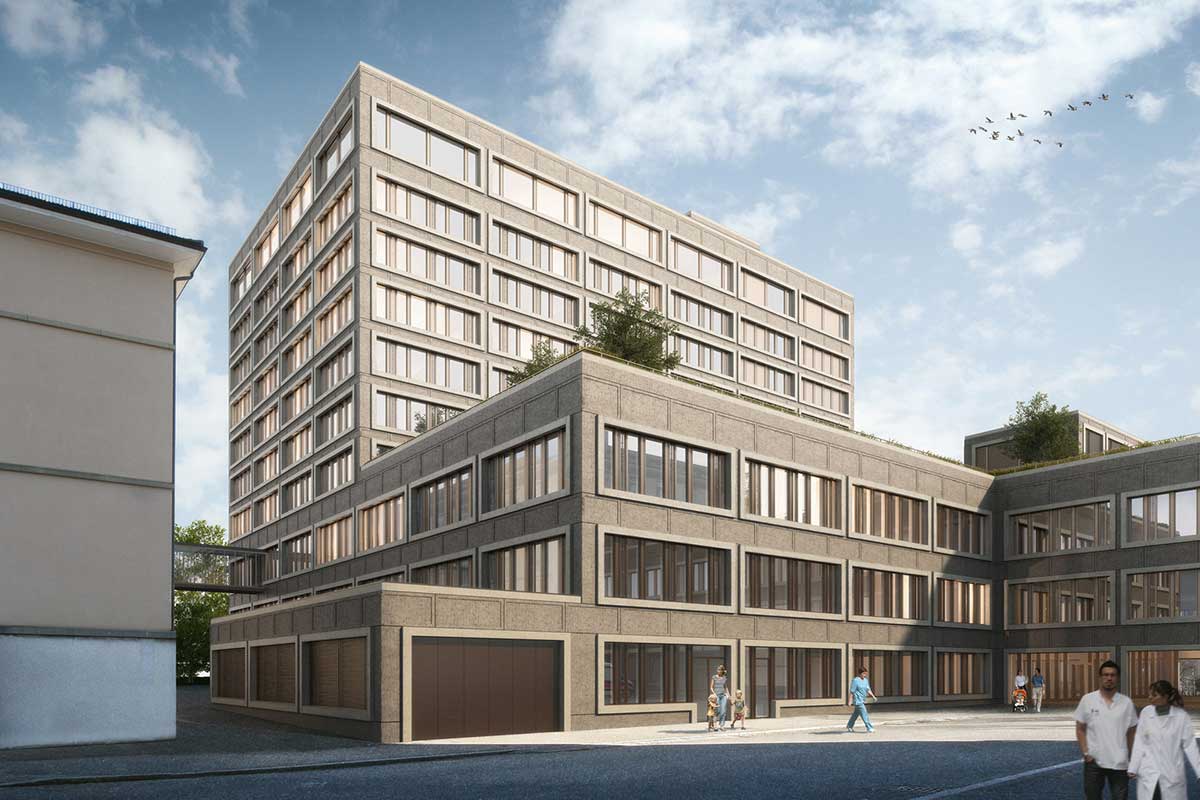 Die Wege für Personal, Besucherinnen und Besuchern, Patientinnen und Patienten sowie für die Warentransporte sind konsequent getrennt. Die zentralen Erschliessungszonen